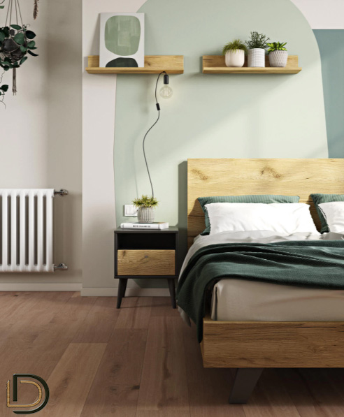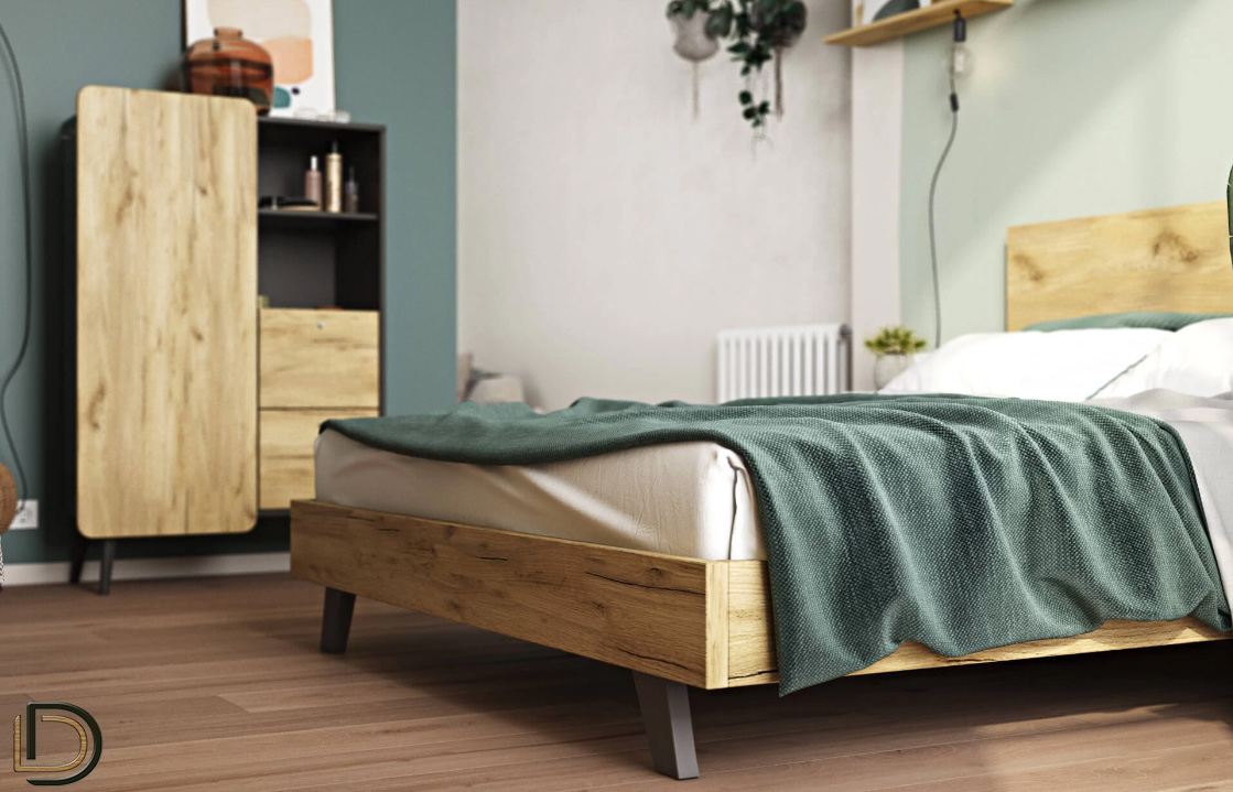 Σετ κρεβατοκάμαρας σε Δρυς ρουστίκ αίσθηση, από τεχνητό καπλαμά υψηλών προδιαγραφών που διαθέτει αντιχαρακτική επίστρωση (anti-scratch coating), για μεγαλύτερη αντοχή στις γρατζουνιές και τα χτυπήματα.