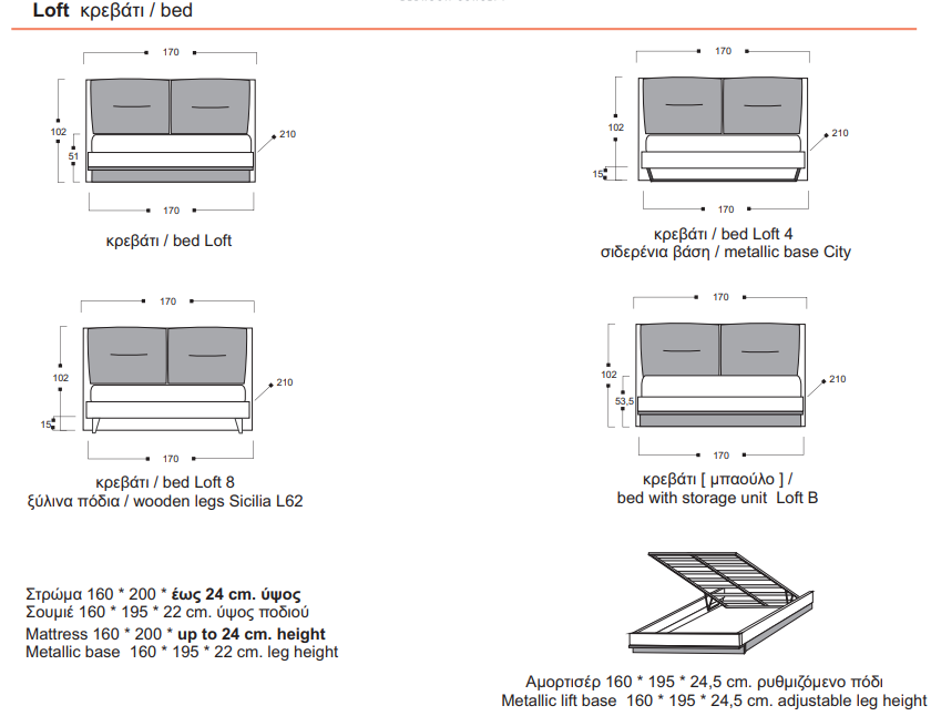 • αποθηκευτικός χώρος (storage box), με ή χωρίς τον μηχανισμό ανύψωσης.