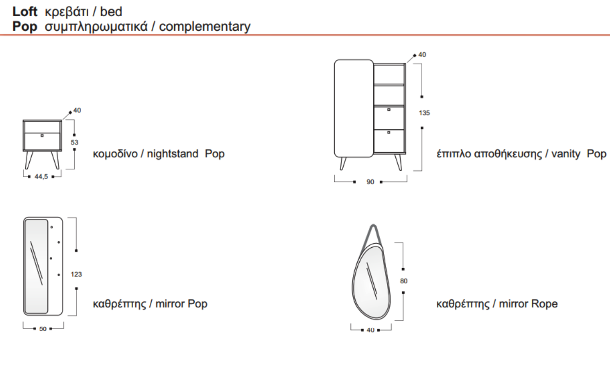 Συνδυάζεται άψογα με όλα τα κομοδίνα και τις συρταριέρες τής σειράς, τα οποία διατίθενται σε πολλά σχέδια και διαστάσεις, ανάλογα με τις ανάγκες σας.
